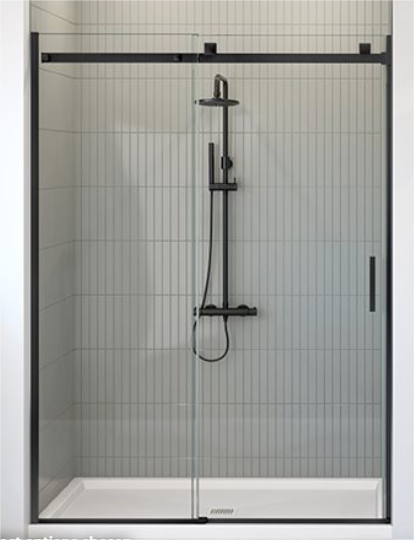 Skyline Inline door, 60W x 79H, matte black/clear glass, 8mm, open left, square hardware